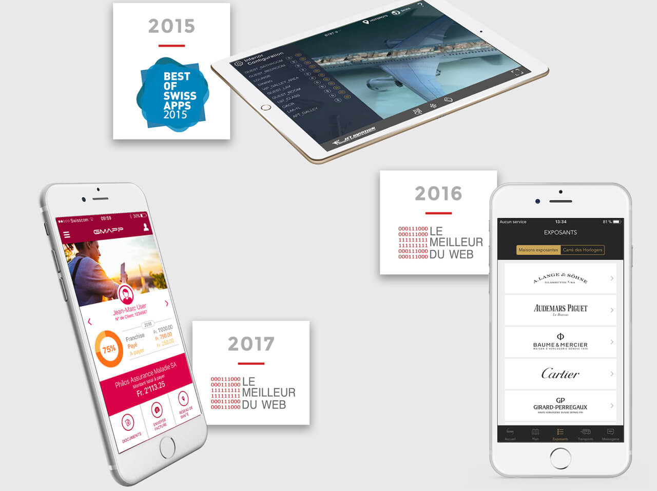 Cela s’ajoute à nos précédents prix après avoir remporté Meilleure du Web 2016 avec l’application d’assurance Groupe Mutuel et Meilleure des App Suisse en 2015 avec le lancement de l’application Jet Aviation.