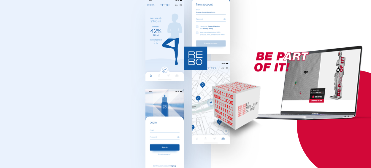 The REBO app with the connected smart bottle is measuring your water intake as it is connected to the app via Bluetooth to the bottle’s sensor equipped cap and proposing you personalised hydration plans based on your activity level. The consumption of tap water and therefore the plastic saving is already a great step towards a cleaner future as well.