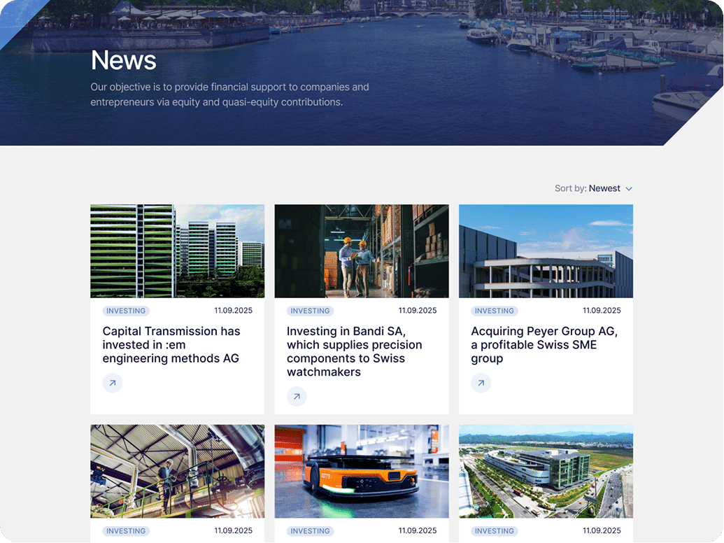 The new platform delivers a modern, high-credibility institutional presence aligned with private-equity standards. Capital Transmission SA now benefits from a consistent and professional digital image across three languages, while gaining the ability to publish updates and manage portfolio entries efficiently.