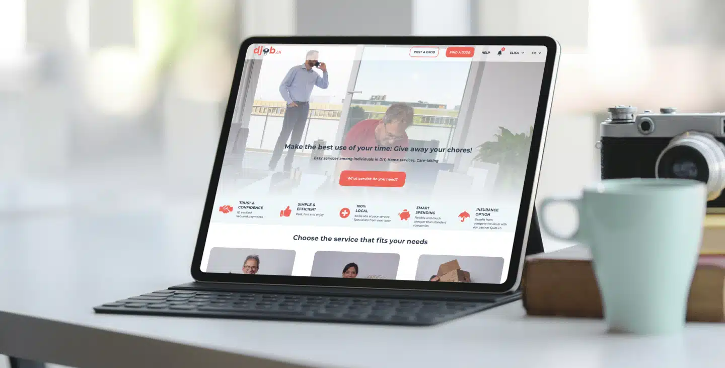 It is often very difficult in Switzerland to find the right service for your needs, and when you find it, companies tend to have long waiting lists and high prices. Djob aims to resolve this difficulty in connecting individuals with professionals with the skills you need. Djob needed to create a platform for these connections to take place, so they were looking for a web design agency to partner with.